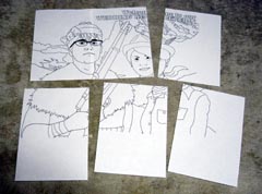 で、キャンバスの上にカーボン紙、さきほどのプリントアウトしてまとめた紙を置き、鉛筆でトレース。